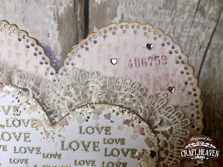 I have gathered and glued lace from Craft Heaven around the central heart and added some tiny heart gems from my stash.
